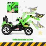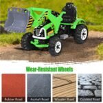 Costway 12V Kids Electric Ride-On Excavator in green | Dual speed, working arm and safety belt | Ages 3–8