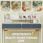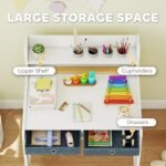 2-Piece Kids Desk and Chair Set – White | Storage Drawers and Paper Roll Holder AIYAPLAY