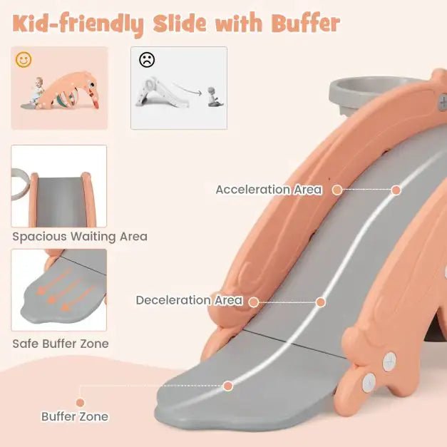 3-in-1 rocking horse, slide and basketball hoop for toddlers | Safe HDPE construction with frog and dolphin design for indoor developmental play