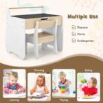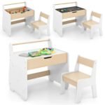 Costway 3-in-1 kids table and chair set in natural white with detachable chalkboard/whiteboard tabletop and paper roll holder | Perfect for creative play and learning, with built-in storage and safety-certified design