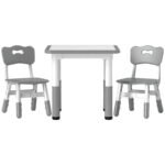 AIYAPLAY adjustable kids table and chair set | White & grey 3-piece set with height-adjustable table and chairs | Ages 18 months–5 years