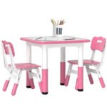 Height Adjustable – Table has seven levels, chairs have three, adapting as children grow