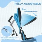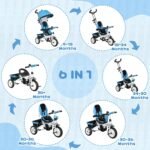 HOMCOM 6-in-1 kids trike stroller | White and blue toddler tricycle with harness, canopy, parent handle and transforming bike modes
