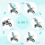 HOMCOM 6-in-1 toddler trike in white & green | Convertible stroller, push trike and independent tricycle with canopy, storage and safety harness | Ages 12–60 months
