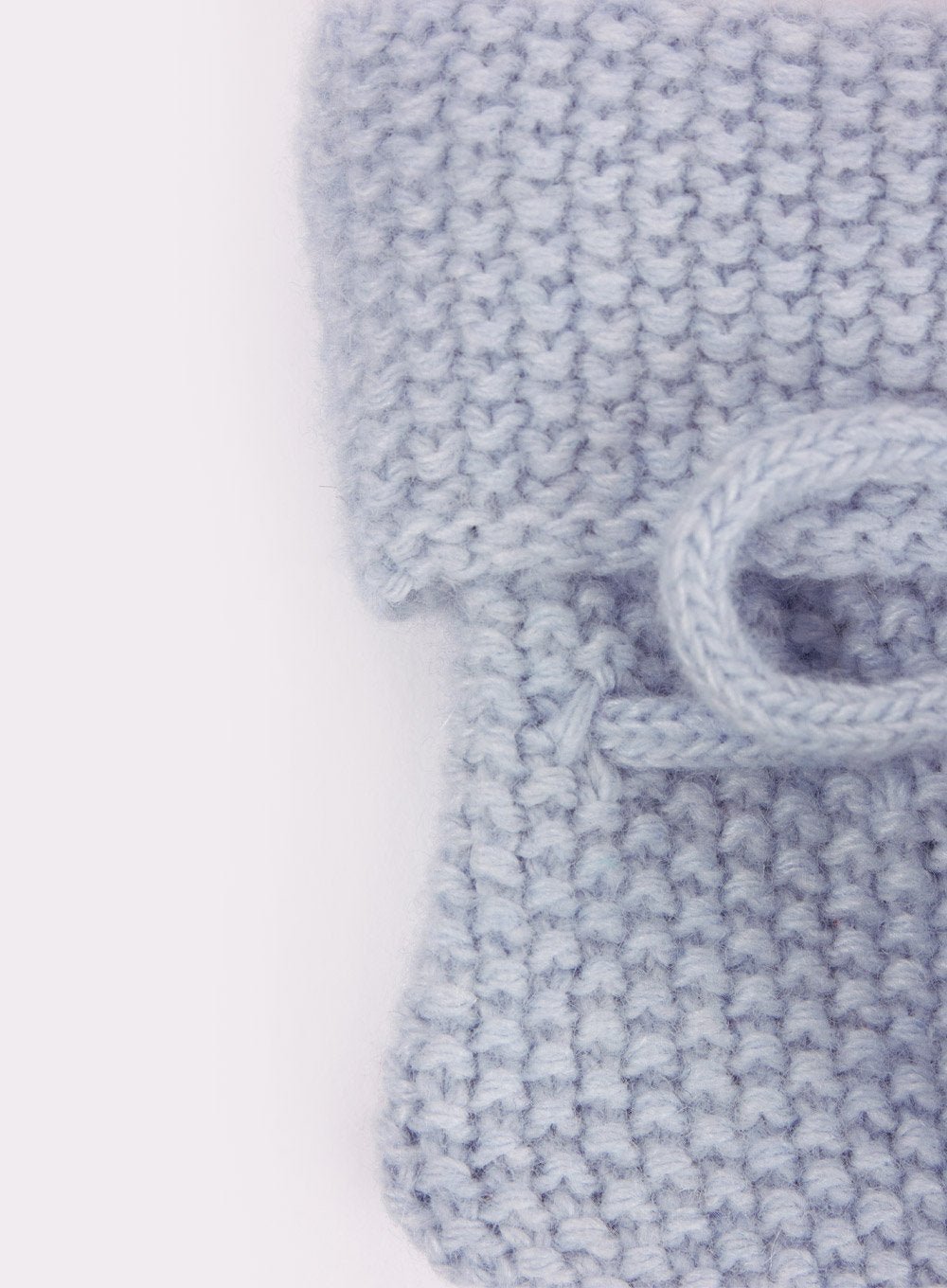 Suitable for ages 0-9 months. 40% wool, 30% viscose, 20% polyamide & 10% cashmere. Use cold hand wash programme & wool detergent. Dry flat. Do not wring, rub, soak or bleach. Cool iron inside out. – – –