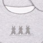 A perfect gift for newborns, this soft jersey bib comes in a fine grey and white striped fabric and features three embroidered bunnies along the bottom. Practical, stylish and comfortable, it’s an attractive way to catch any spills and/or dribble while offering protection to the outfit underneath. Pair with our matching Bunny all-in-one and hat for the perfect newborn gifts.