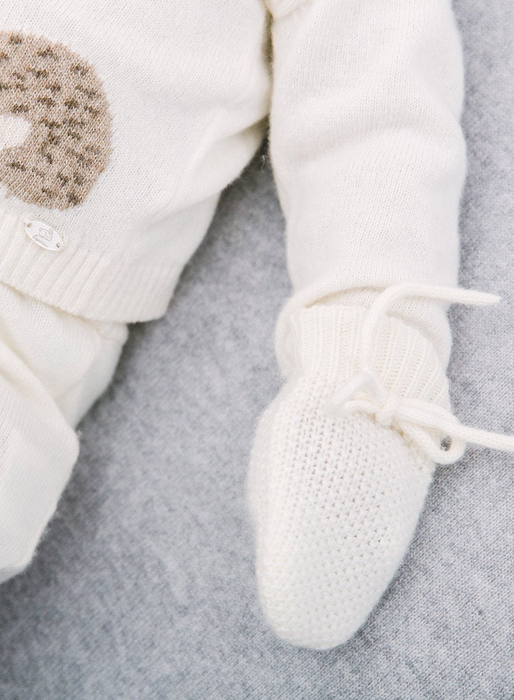 These pretty white mittens have a stylish rice stitch finish and are made in a soft and warm cashmere mix. Featuring little mitten string, they’re a great way to keep little fingers warm during the colder months. Pair with our matching white booties for the complete set.