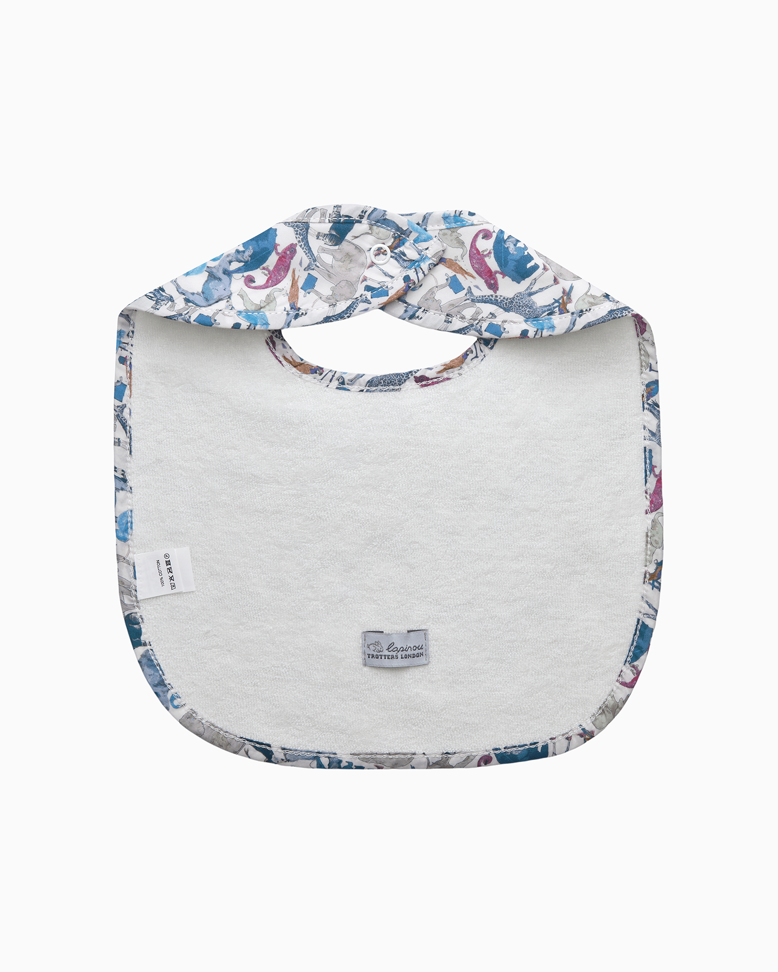 Add a touch of class to every outfit with our beautifully designed baby bibs. Made in Liberty’s Queue for the Zoo print fabric, a charming animal print that was part of a collaboration between the Liberty design team and children’s author, OK David, they feature an absorbent towelling backing for those slightly messier moments.  Made from 100% Tana Lawn® cotton, they are a stylish way to keep you baby dry and their little outfits mess-free (for longer). Perfect for dribbles, teething, or messy mealtimes, these bibs make a wonderful baby shower gift or an adorable addition to your little one’s wardrobe.
