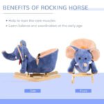HOMCOM elephant rocking horse | Blue plush toddler rocker with 32 nursery rhymes, lightweight build and safe wooden base