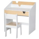 Kids Desk and Chair Set – White | Study Table with Drawer and Shelf HOMCOM