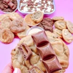 Wheatflour (WHEAT) (With Added Calcium, Iron, Niacin, Thiamin), Sugar, Butter (cream (MILK), Salt)., Light Brown Sugar (Sugar Cane, Cane Molasses)., Egg (EGG), White Chocolate (Sugar 46.5%, Cocoa Butter 29.5%, Whole Milk Powder (MILK) 23.5%, Emulsifier: Soya Lecithin (SOYA) <1%, Natural Vanilla Flavouring <1%)., Milk Chocolate (Sugar, Cocoa Butter, Whole Milk Powder (MILK), Cocoa Mass, Emulsifier: Soya Lecithin (SOYA), Natural Vanilla Flavouring),. Cocoa Powder (4%) Inverted Sugar Syrup, Raising Agent: Sodium Hydrogen Carbonate E500, Salt (Salt, Anti-caking Agent (Sodium Ferrocyanide). Milk chocolate spread ( Sugar, Vegetable oil (Sunflower Oil), Milk (MILK) Chocolate 22% (Sugar, Whole Milk (MILK) powder, Cocoa butter, Butter (MILK) and Cocoa mass), Lactose (MILK), Fat reduced Cocoa powder, Skimmed milk powder (MILK) , Emulsifier (SOYA))., Cadbury Dairy Milk (Milk (MILK), Sugar, Cocoa Butter, Cocoa Mass, Vegetable Fats (Palm, Shea), Emulsifiers (E442, E476), Flavourings, Milk Solids 20 % Minimum, Actual 23 %. Cocoa Solids 20 % Minimum. Contains Vegetable Fats In Addition To Cocoa Butter)., Wispa Gold (Milk (MILK), Sugar, Glucose Syrup, Cocoa Butter, Cocoa Mass, Vegetable Fats (Palm, Shea), Glucose-Fructose Syrup, Whey Powder (From Milk) (MILK), Emulsifiers (E442, E471), Salt, Sodium Carbonates, Flavourings. Milk Chocolate: Milk Solids 14 % Minimum. Contains Vegetable Fats In Addition To Cocoa Butter).