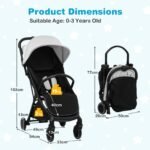 Costway portable baby stroller | Lightweight grey pushchair with one-hand fold reclining backrest and shock-absorbing wheels