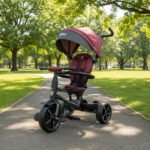 The breathable padded seat, adjustable backrest and protective canopy make every ride comfortable, whether indoors or outdoors. Built with a strong 10″ front wheel featuring freewheel function and 8″ rear wheels with blocking function, this trike delivers both fun and reliable control. Finished in a striking burgundy, it’s the perfect balance of style and functionality for growing families.