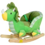 Green dinosaur plush rocking horse with sound effects | Secure seat, footrests & sensory development for toddlers aged 18–36 months