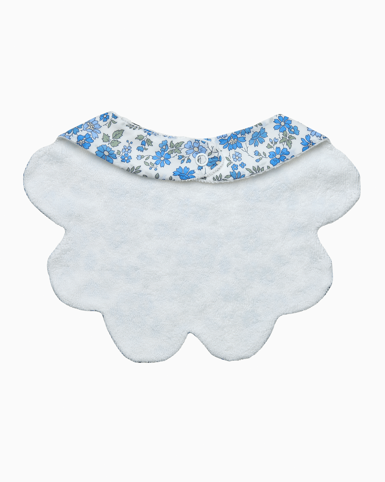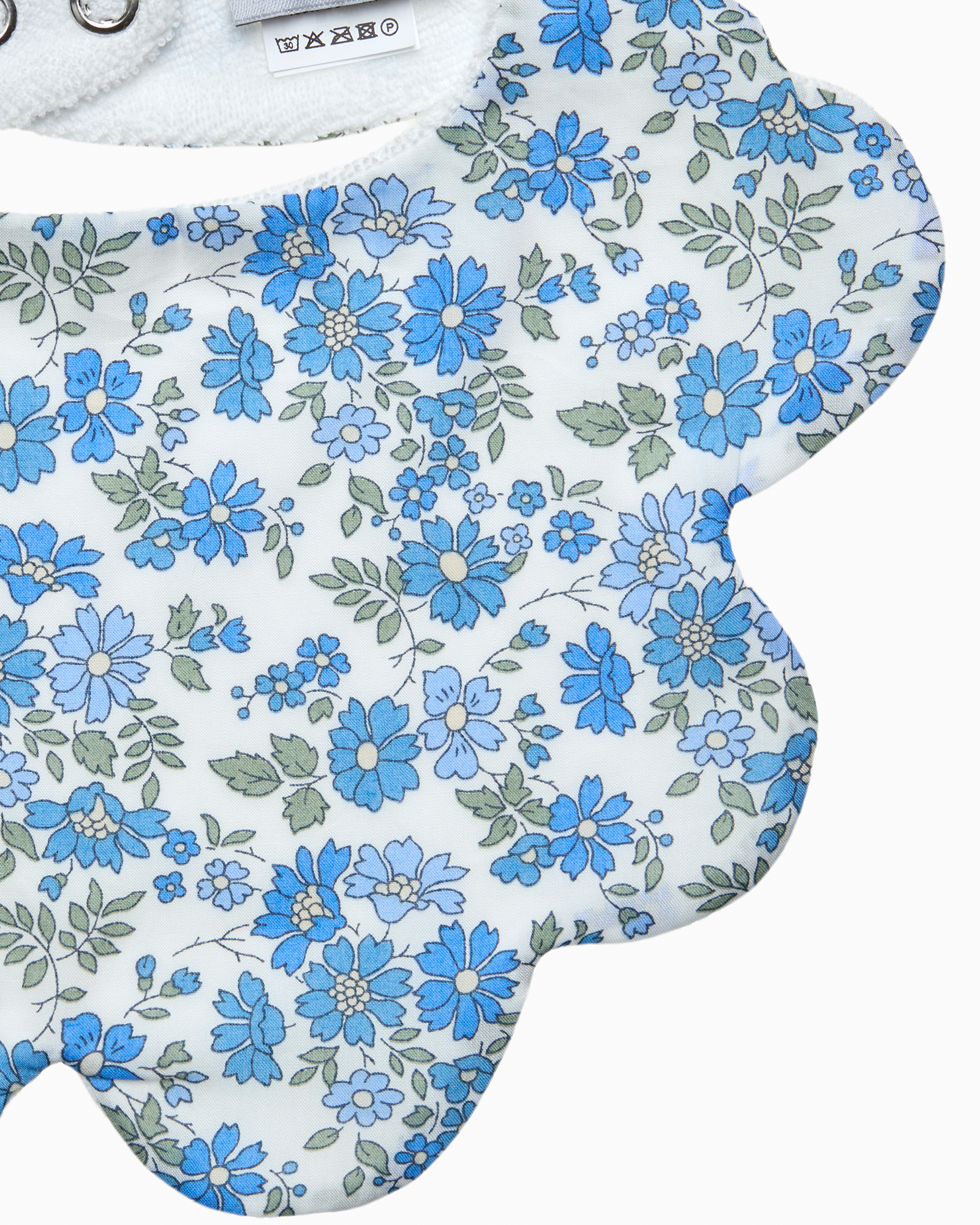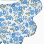Add a touch of elegance to every outfit with our beautifully designed scalloped-edged baby bibs. Made in Liberty’s Blue Capel print fabric, a small and loosely-drawn floral design inspired by a vintage style of Liberty floral dating from the 1930s. Gentle and absorbent for those slightly messier moments, they’re made from 100% Tana Lawn® cotton and are a stylish way to keep you baby dry and their little outfits mess-free (for longer). Perfect for dribbles, teething, or messy mealtimes, these bibs make a wonderful baby shower gift or an adorable addition to your little one’s wardrobe.