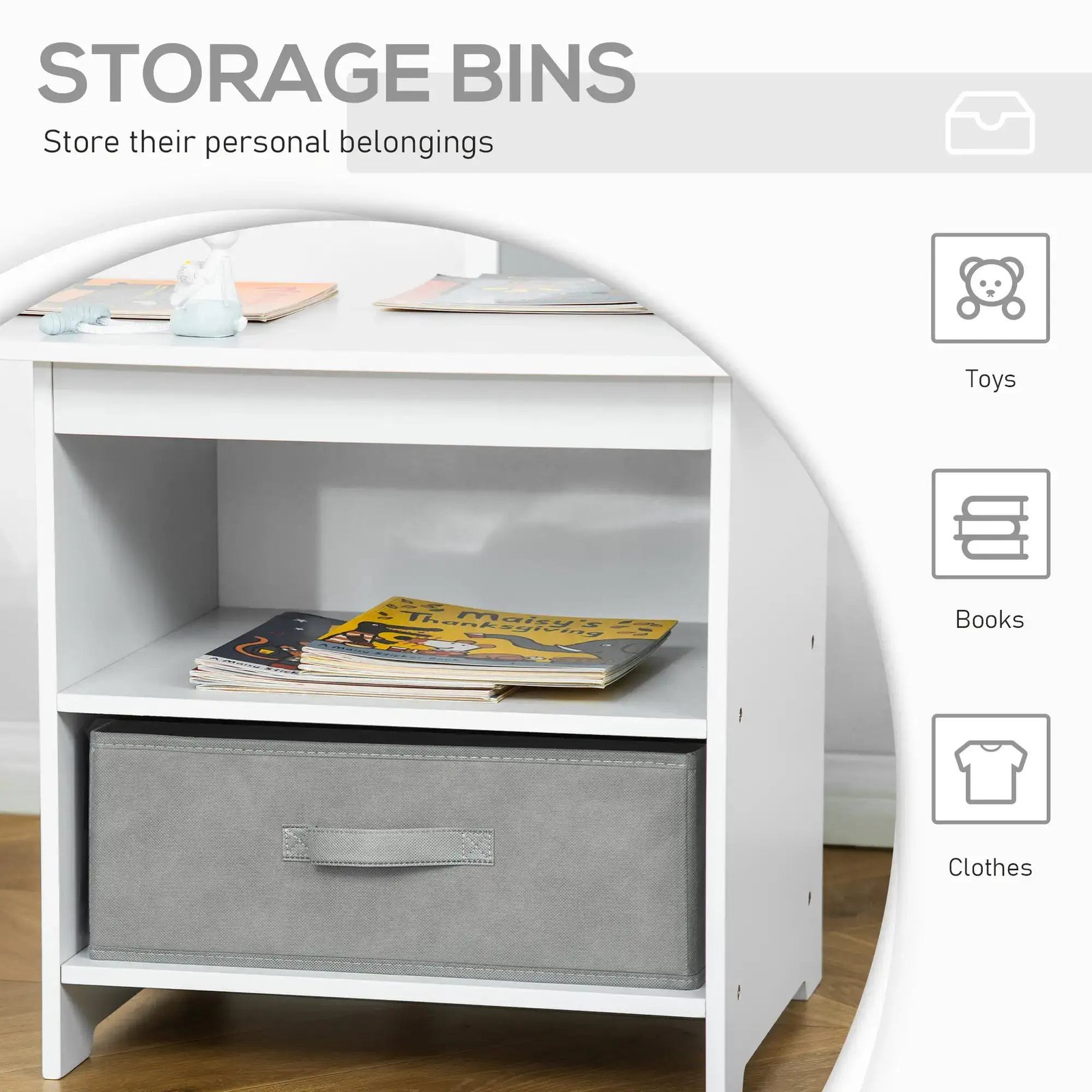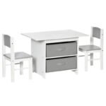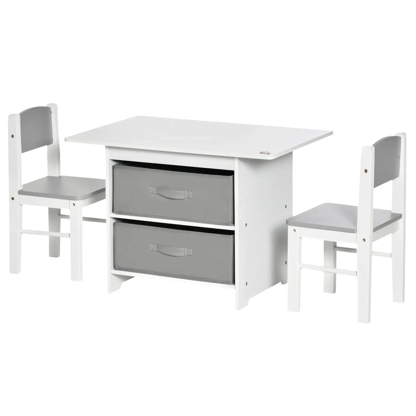 HOMCOM kids table and chair set in white and grey with two storage drawers | Safe MDF build with rounded edges | Ideal for ages 2-4 years
