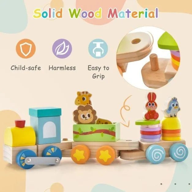 Transform playtime into an adventure of discovery with this beautifully crafted wooden stackable train set designed to inspire creativity and skill development