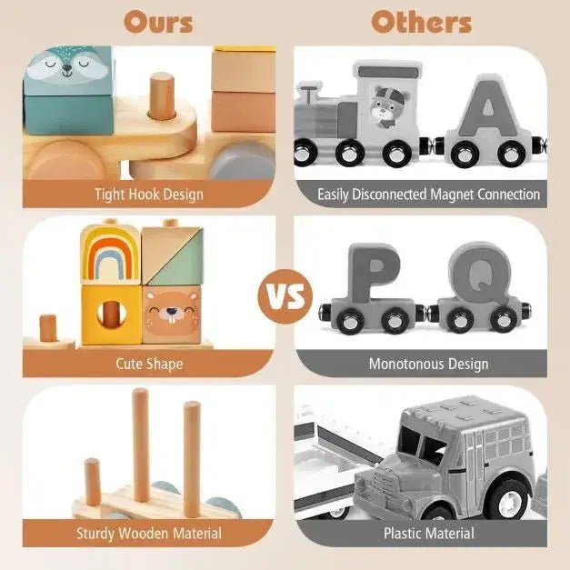 • 3-Piece Wooden Train – Includes 1 engine and 2 hook-on carriages